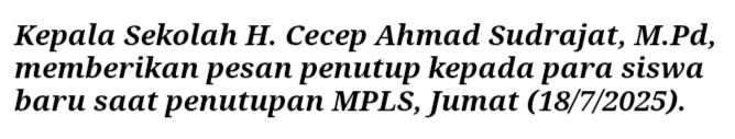 Kegiatan penutupan berlangsung khidmat namun penuh semangat. Dalam amanatnya, Kepala SMP Negeri 1 Batujajar, H. Cecep Ahmad Sudrajat, M.Pd, menyampaikan pesan penting kepada para siswa baru.