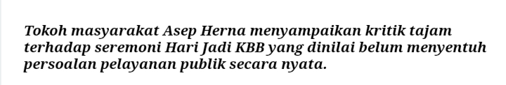 Namun, tokoh masyarakat Bandung Barat, Asep Herna, menilai peringatan ini tak cukup jika hanya berhenti pada seremoni. Menurutnya, pidato Bupati harus dibuktikan dengan implementasi nyata di lapangan.