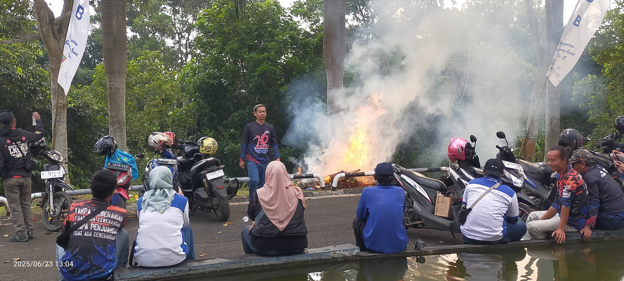 Meski hanya satu karangan bunga yang dibakar, puluhan lainnya masih berjajar rapi dan dijaga oleh petugas keamanan. Aksi tersebut menjadi bentuk kritik keras terhadap Pemkab Bandung Barat atas lemahnya perlindungan terhadap pekerja.