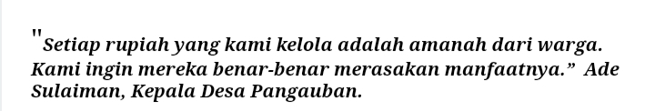 Bukan hanya angka yang dibacanya dari selembar laporan, tetapi tanggung jawab besar yang ia rasakan sebagai kepala desa terhadap masyarakat yang mempercayakan arah pembangunan kampung halamannya.