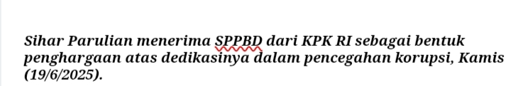 “Abang Sihar itu tegas, lugas, dan berani bersuara demi kepentingan masyarakat. Ia pantas menerima penghargaan dari lembaga sekelas KPK,” ujar sumber tersebut.