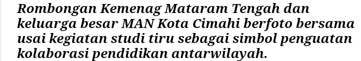 CIMAHI, rajindonews.com – Kolaborasi kuat antara madrasah, komite, dan orang tua siswa di MAN Kota Cimahi (MAN Koci) menjadi daya tarik utama kunjungan studi tiru rombongan Kantor Kemenag Mataram Tengah, NTB, Sabtu (15/11/2025).
