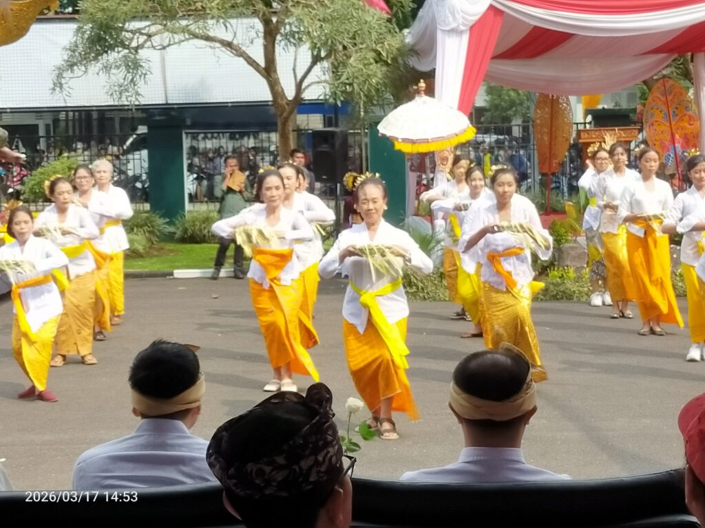 Kegiatan yang digelar umat Hindu bersama lintas etnis dan suku tersebut menampilkan berbagai kesenian tradisional sebagai simbol kerukunan dan toleransi di Kota Cimahi.