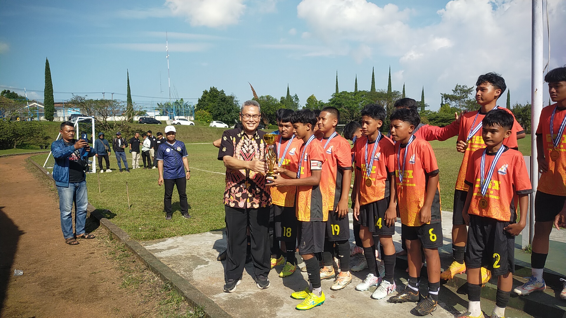 “Tim Kecamatan Cipatat raih Juara 2 GSI KBB 2025. Tropi diserahkan oleh Kepsek SMPN 4 Cipatat, Hartono.”