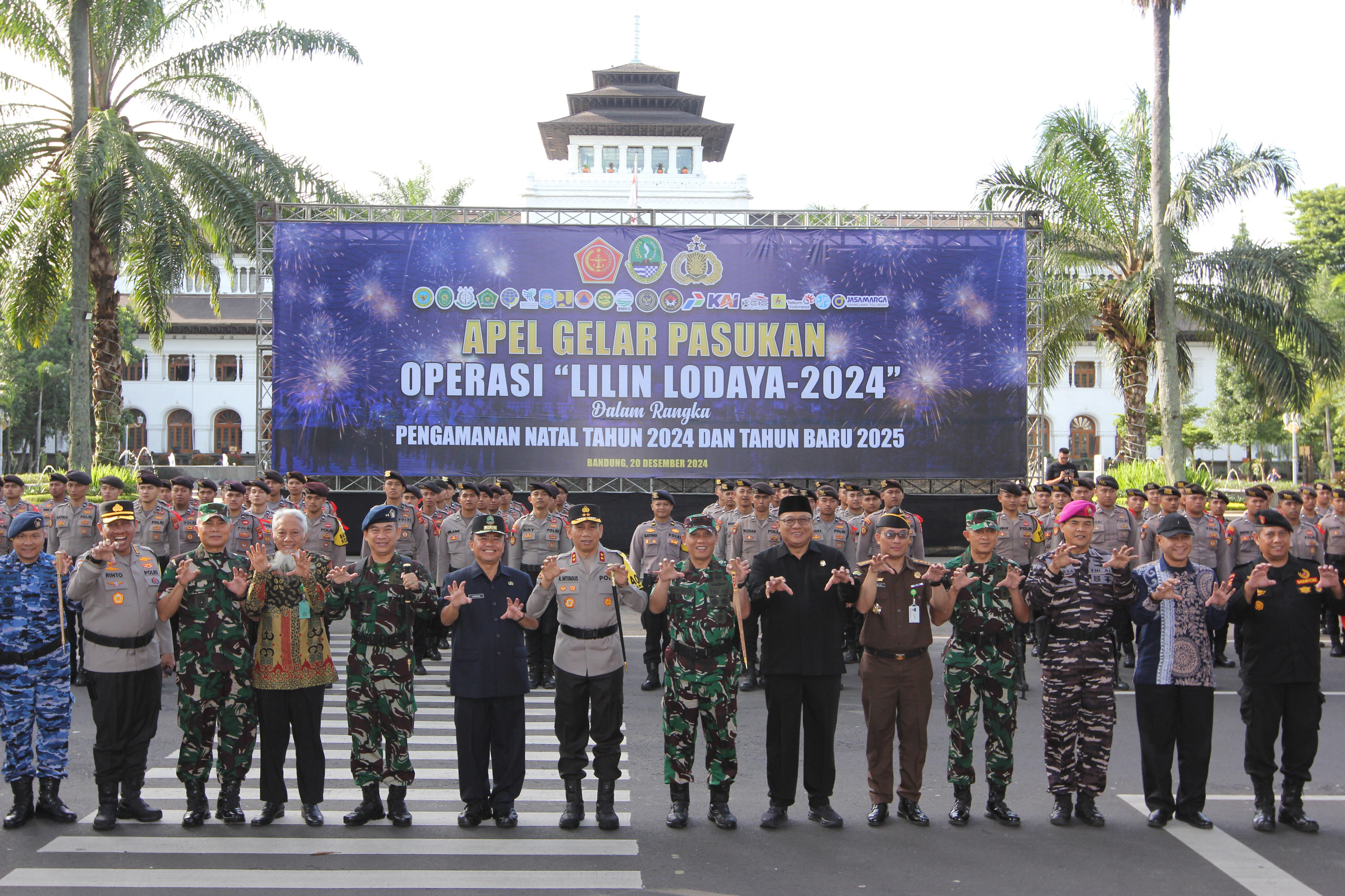 BANDUNG,RAJINDONEWS – Dalam rangka persiapan pengamanan Natal 2024 dan Tahun Baru 2025, Pangdam III/Siliwangi Mayjen TNI Dadang Arif Abdurahman, S.E., M.Si., CHRMP., bersama Kapolda Jawa Barat Irjen Pol Dr. Akhmad Wiyagus, S.IK., M.Si., MM., dan Sekda Provinsi Jawa Barat Dr. Drs. Herman Suryatman, M.Si., memimpin Apel Gelar Pasukan Operasi Lilin-Lodaya 2024 di Jl. Diponegoro, Kota Bandung, pada Jumat (20/12/2024).