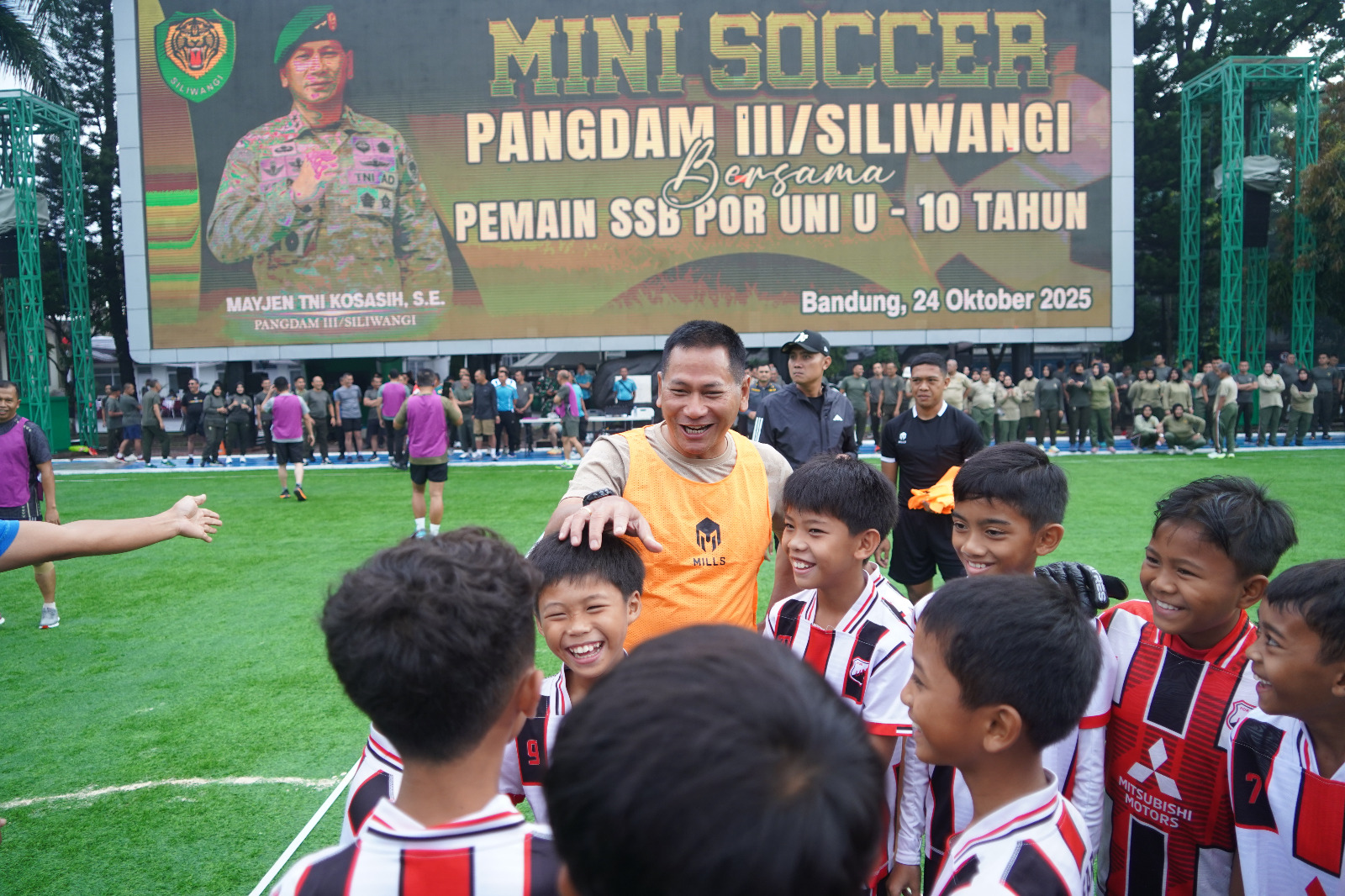 Pangdam III/Siliwangi Mayjen TNI Kosasih, S.E., bersama jajaran pejabat Kodam III/Siliwangi, menggelar pertandingan mini soccer persahabatan melawan tim juara dunia cilik, SSB POR UNI U – 10.