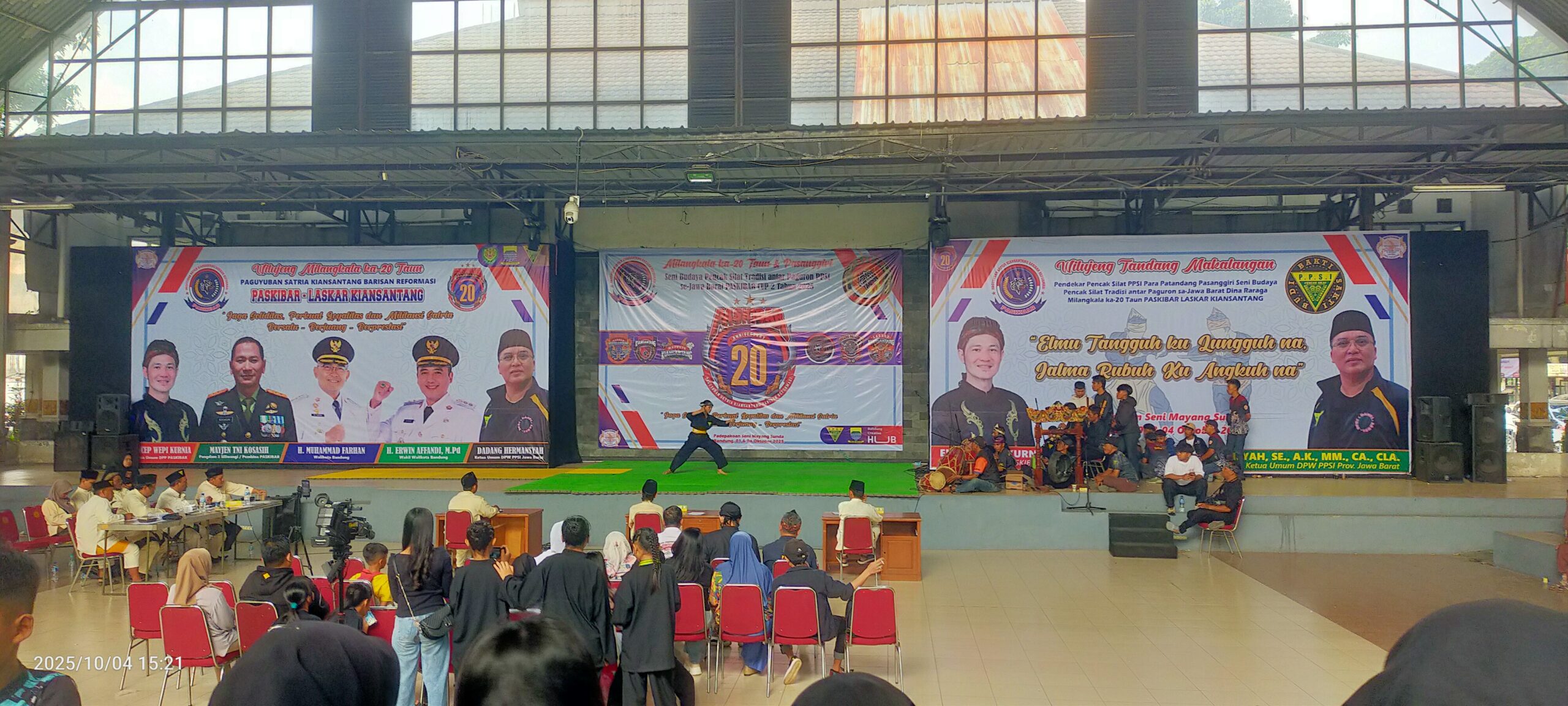 KOTA BANDUNG, RajindoNews.com – Suasana penuh semangat mewarnai Padepokan Seni Mayang Sunda, Kota Bandung. Ratusan pendekar dan pecinta pencak silat dari berbagai daerah di Jawa Barat berkumpul dalam rangkaian peringatan Milangkala ke-20 Paguyuban Satria Kiansantang Barisan Reformasi (Paskibar) – Laskar Kiansantang. Puncak acara ditandai dengan pertandingan pasanggiri pencak silat yang diikuti 100 peserta dari berbagai daerah, menjadikan ajang ini salah satu kegiatan budaya terbesar di Jawa Barat tahun ini,Pada Sabtu (4/10/2025).