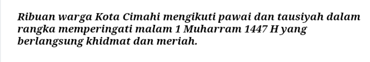 “Alhamdulillah, warga Cimahi berduyun-duyun hadir. Ini bukan sekadar perayaan, tetapi momen untuk mengintrospeksi hati, sikap, dan langkah kita ke depan,” katanya.