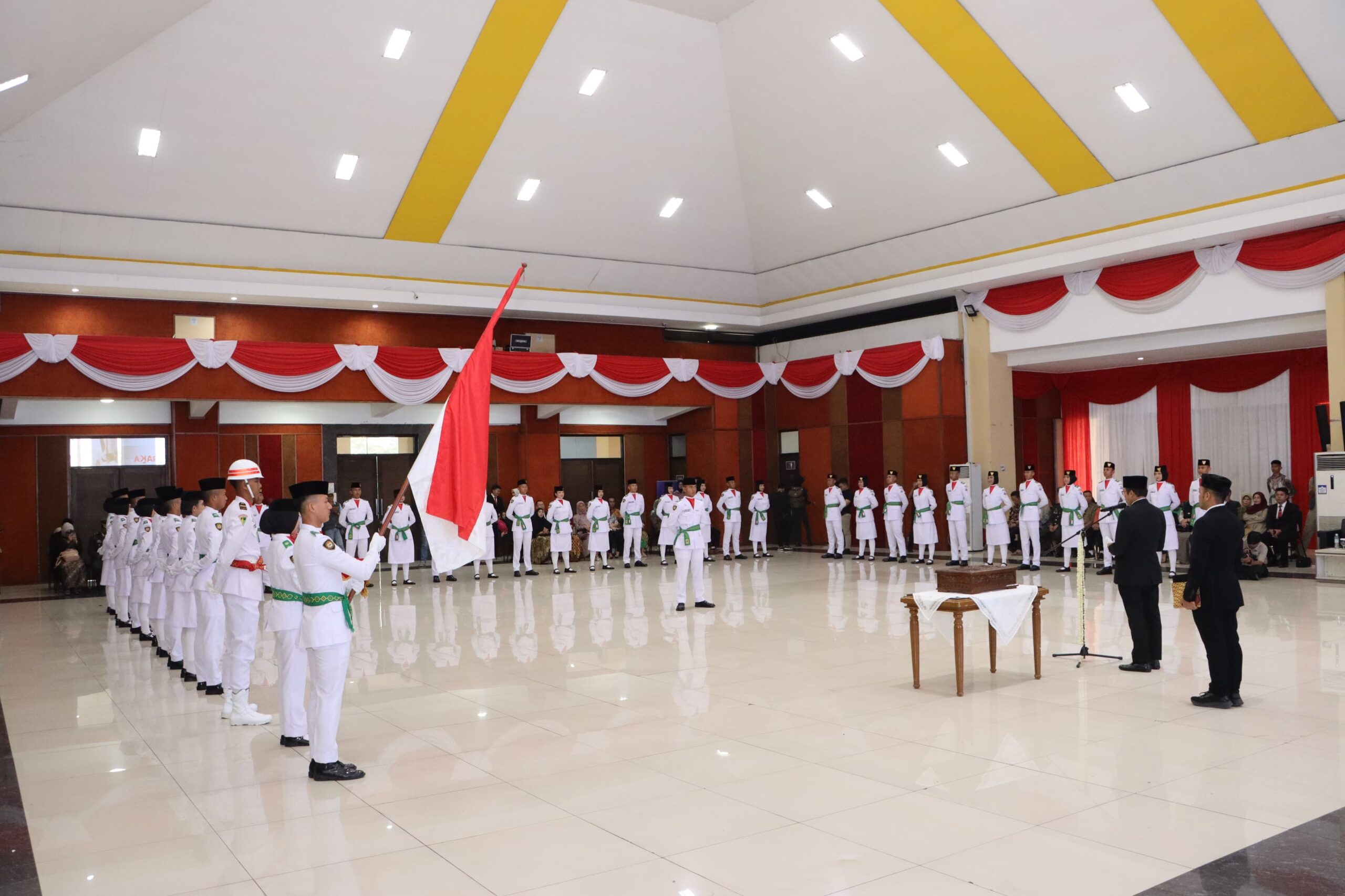 CIMAHI, RajindoNews.com – Pemerintah Kota Cimahi mengukuhkan 38 anggota Pasukan Pengibar Duplikat Bendera Pusaka (Paskibraka) tingkat Kota Cimahi Tahun 2025 di Convention Hall Cimahi Techno Park, Jumat (15/8/2025) sore.