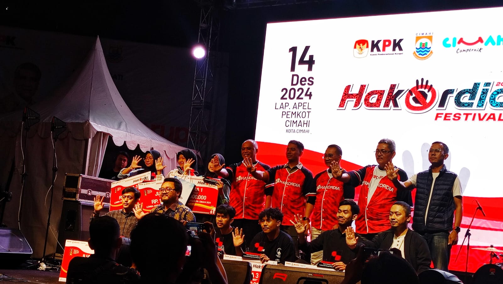 Malam puncak Hakordia semakin meriah dengan penampilan musik dari Queen Percussion dan Fingky Twingky yang menghibur warga. Namun, salah satu momen paling mengesankan malam itu adalah ketika Penjabat Sekretaris Daerah (PJ Sekda) Kota Cimahi, Budi Raharja, membacakan puisi berjudul “Kembalikan Negeri Ini”.