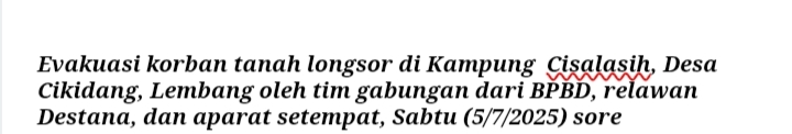 “Korban ditemukan dalam kondisi meninggal dunia, dan langsung dievakuasi oleh tim relawan bersama aparat setempat,” ujar Andri Supriadi, Relawan Destana KBB dalam laporannya.