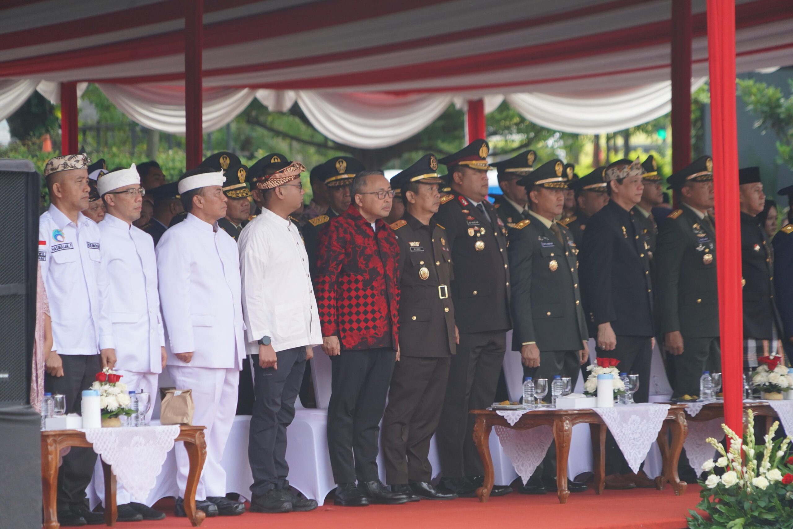 Upacara berlangsung khidmat, dipimpin langsung oleh Gubernur Jawa Barat H. Dedi Mulyadi, S.H., M.M., sebagai Inspektur Upacara. Hadir pula jajaran Forkopimda Jawa Barat, Wakapolda Jabar, serta para pejabat tinggi TNI-Polri, menandai kuatnya sinergi antara unsur pemerintahan dan pertahanan negara.