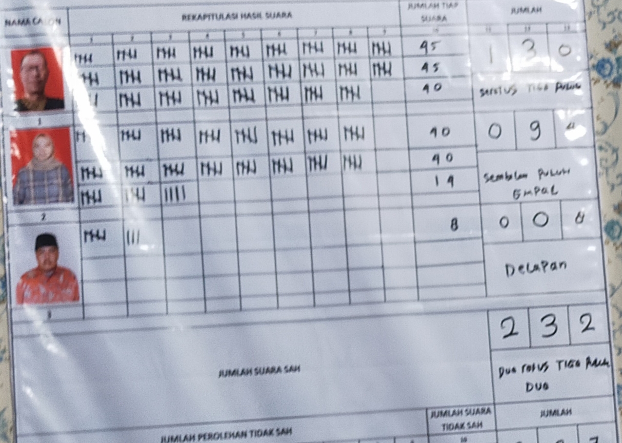 Dari total 239 hak suara yang berasal dari perwakilan 13 Rukun Warga (RW), Uus meraih suara terbanyak dengan 130 suara. Disusul oleh calon nomor urut 2, Eros Rosidah, yang memperoleh 94 suara, sementara calon nomor urut 3, Sahmudin, hanya memperoleh 8 suara. Adapun 7 suara dinyatakan tidak sah atau abstain.